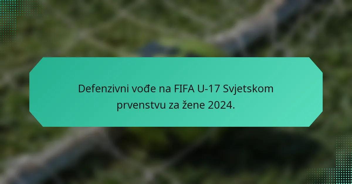 FIFA U-17 Svjetsko prvenstvo za žene 2024. ističe važnost vrhunskih obrambenih igrača koji su ključni za uspjeh svojih timova. Ovi braniči pokazuju iznimne vještine i strategije, utječući na ukupnu učinkovitost tima kroz ključne statistike poput osvajanja lopti, presijecanja i izbacivanja. Njihove izvedbe ne odražavaju samo individualni talent, već također oblikuju dinamiku tima i ishod utakmica.