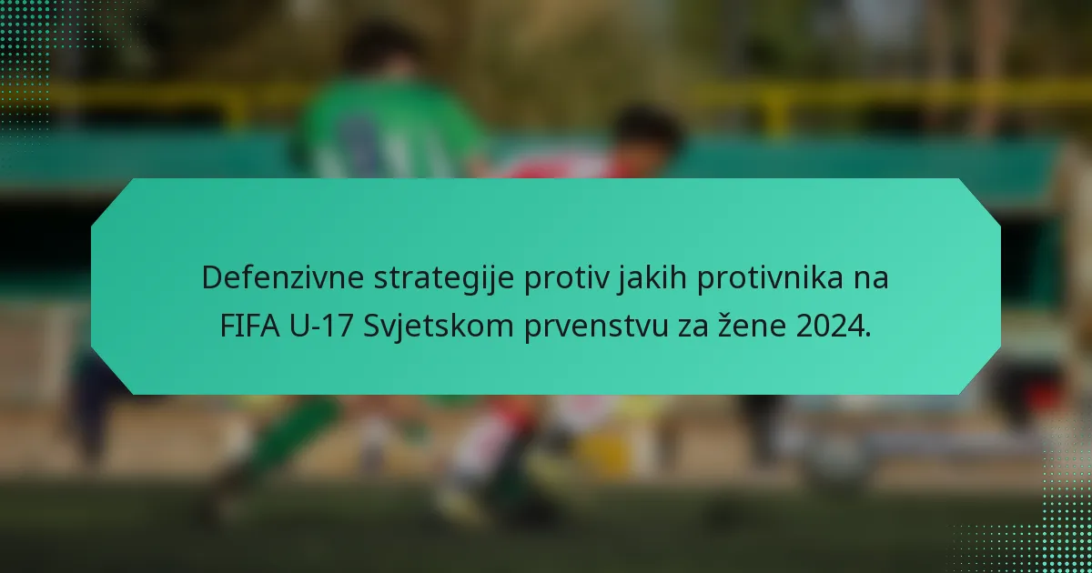 Na FIFA U-17 Svjetskom prvenstvu za žene 2024., učinkovite defenzivne strategije su ključne za timove koji se suočavaju s jakim protivnicima. Fokusirajući se na formacije, pozicioniranje igrača i komunikaciju, timovi mogu prilagoditi svoje taktike kako bi neutralizirali snage suparnika, dok koriste tehnike pritiska za povratak posjeda. Odabir formacije igra vitalnu ulogu u jačanju defenzivnih sposobnosti tima, osiguravajući da zadrže strukturu i učinkovito odgovore na napadačke prijetnje.