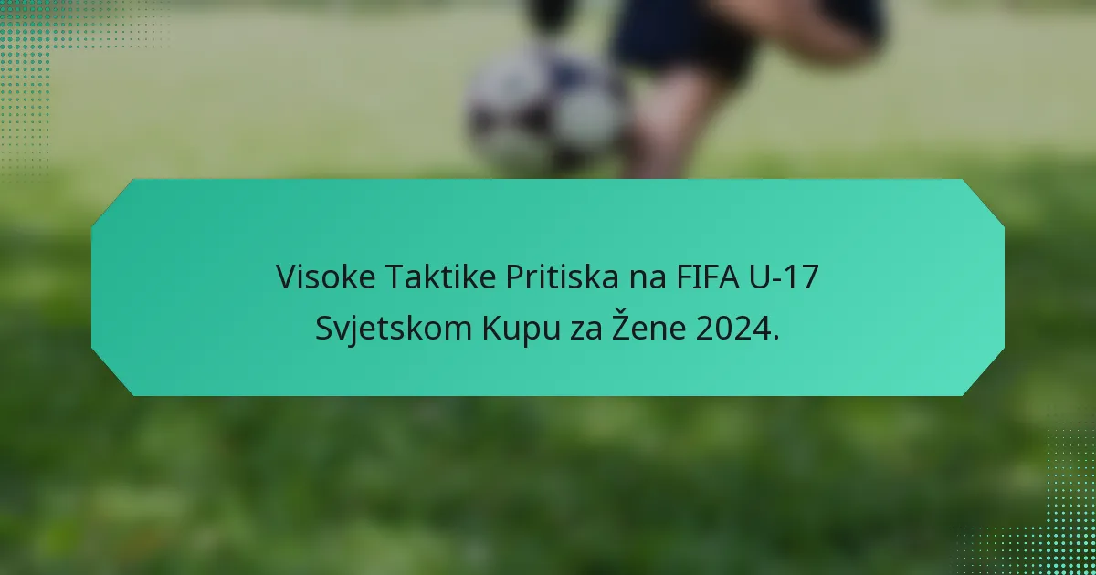 Taktike visokog pritiska postale su prepoznatljiva značajka FIFA U-17 Svjetskog prvenstva za žene 2024., s timovima koji primjenjuju agresivne strategije kako bi brzo povratili posjed nakon gubitka lopte. Ovaj pristup ne samo da ometa igru protivnika, već također stvara prilike za postizanje golova kroz brze tranzicije i učinkovito timsko djelovanje. Značajni timovi poput Sjedinjenih Američkih Država, Njemačke i Brazila pokazali su svoju vještinu u visokom pritisku, značajno poboljšavajući svoju izvedbu tijekom turnira.