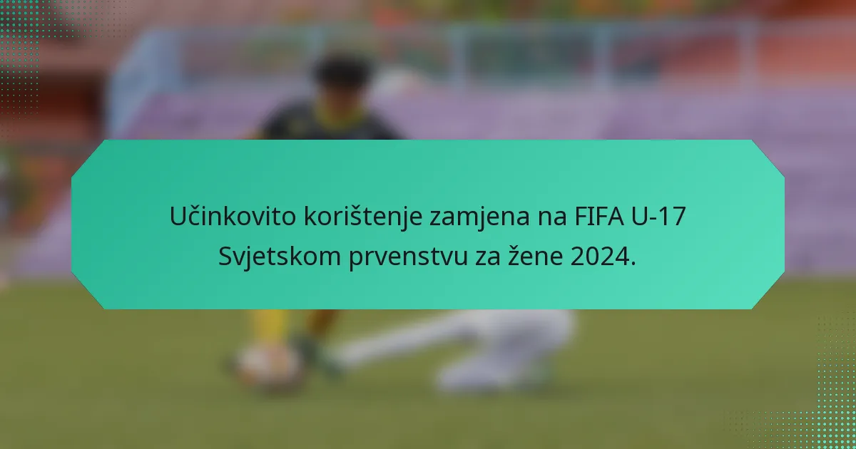 Učinkovite zamjene na FIFA U-17 Svjetskom prvenstvu za žene 2024. mogu značajno utjecati na ishode utakmica. Ključne prakse uključuju vrijeme zamjene, kriterije odabira igrača i strategije za upravljanje umorom uzimajući u obzir ukupnu dinamiku igre.