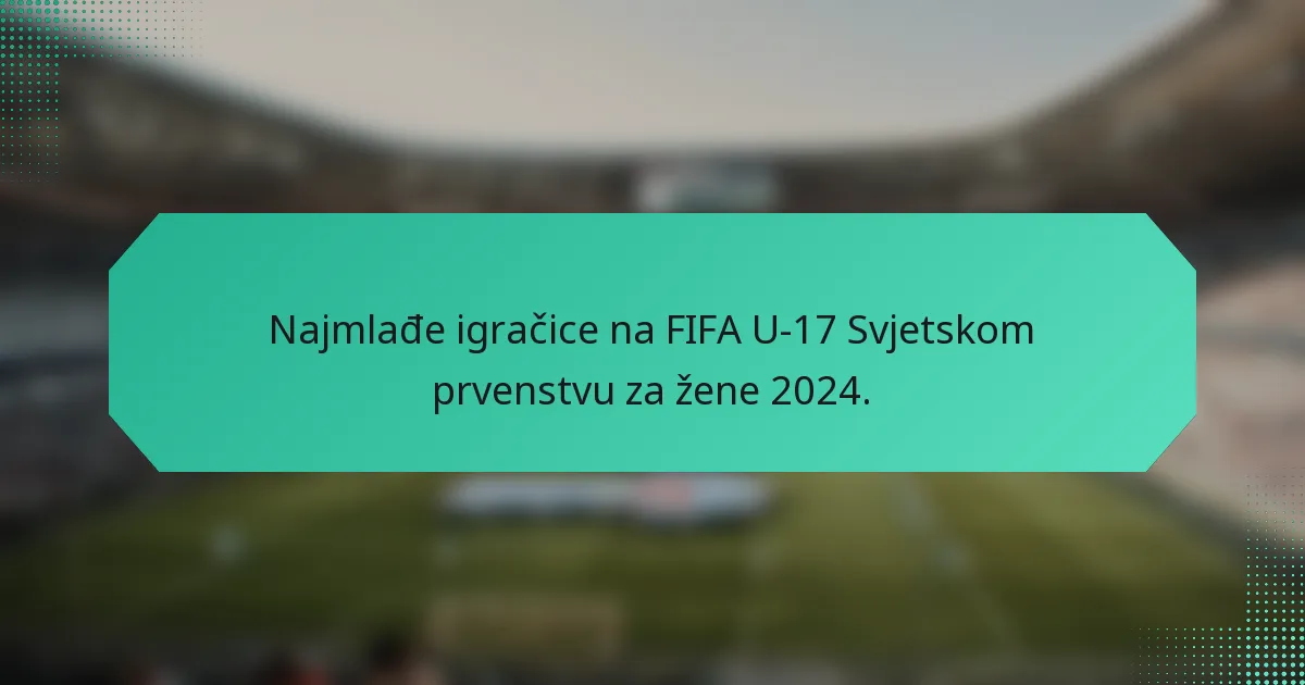 FIFA U-17 Svjetsko prvenstvo za žene 2024. uključuje nekoliko iznimno mladih igrača, od kojih neki ostavljaju trag već sa 14 ili 15 godina. Ovi sportaši ne samo da predstavljaju svoje zemlje, već i pokazuju izvanredan talent i potencijal na međunarodnoj sceni.